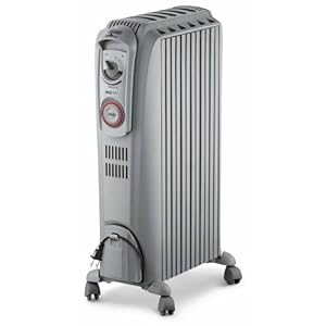 The radiator construction features rustproof metal for even heat distribution and resilience with pure diathermic oil completely sealed inside. Heat radiates through several vertical thermal tunnels while keeping the hot elements enclosed and out of the reach of fingers and other body parts and objects. Three power settings allow flexibility for diverse rooms and personal heating needs. For energy efficiency, the heater runs low at 600 watts or medium at 900 watts to slowly spread warmth. On high at 1500 watts, the radiator brings full heat to the room with extra speed. Users direct the room's temperature for comfort with an adjustable thermostat. With a 24-hour programmable timer, the heater offers 96 options in terms of temperature, wattage, duration, and activation time. An antifreeze function engages should the indoor temperature fall below 44 degrees F, while the heater also automatically shuts off upon knock-over or overheating. Four wheels enable easy transportation from one room to another. The power cord wraps around for storage. DeLonghi advises against placing the radiator too close to power outlet, outdoors, or near flammables. Avoid running the power line under carpets. Thorough safety guidelines and assembly instructions are included. The radiator weighs 23 pounds upon shipping. --Jessica Reuling